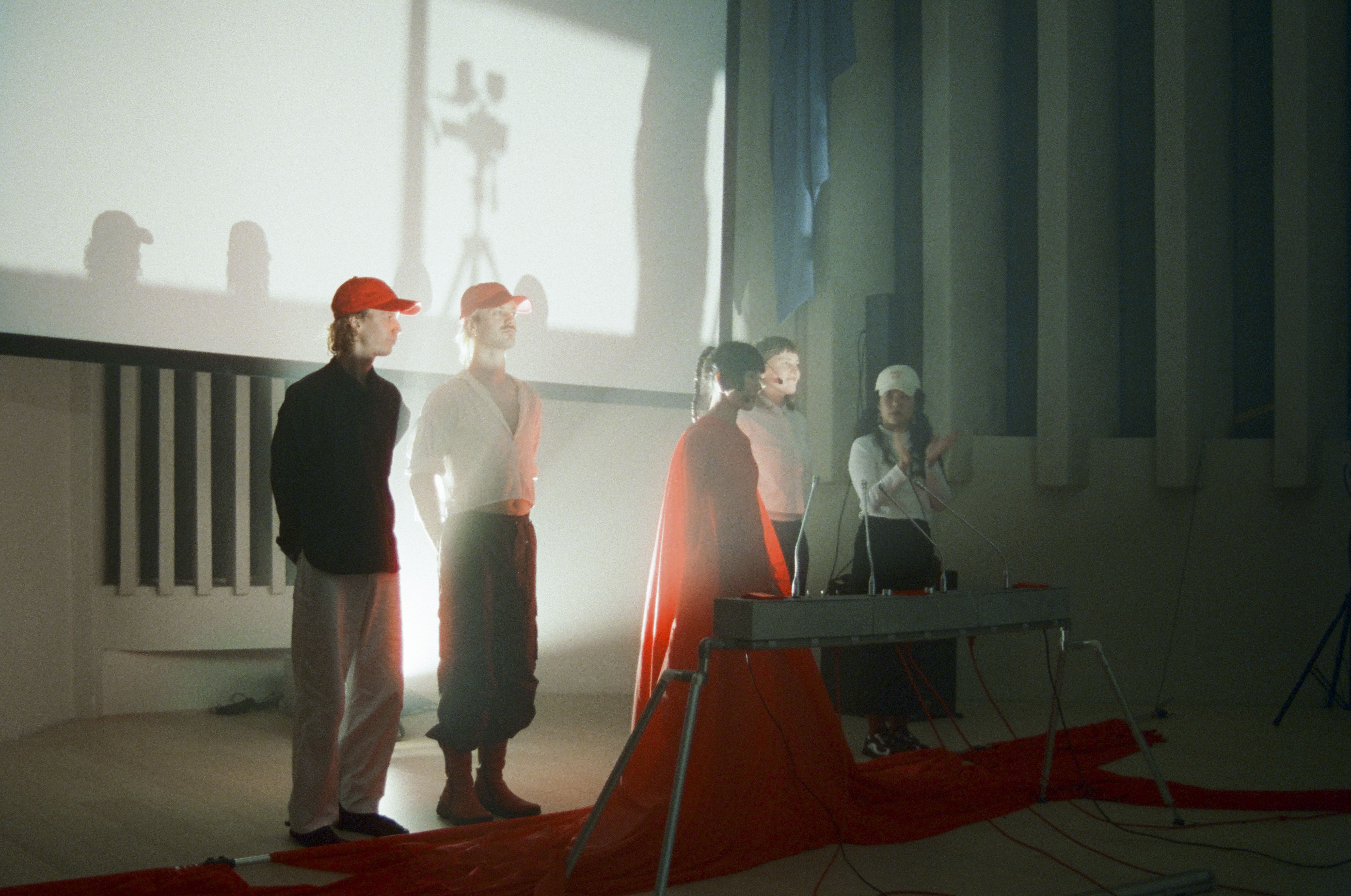 Make It Fit - A Life Script constructs an ordinary yet contrived situation. Blending forms, like: reality show, memory reenactment, speech, collective reading and artist talk, to embrace the ambiguity of fitting—and failing to fit in. The enacted script becomes a live negotiation between language, performance and power.